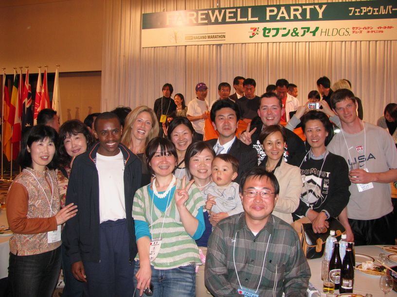 ↑フェアウェルパーティ。男子優勝のキナンジュイ(ケニア)とその後ろは女子2位のケイト(オーストラリア)。
